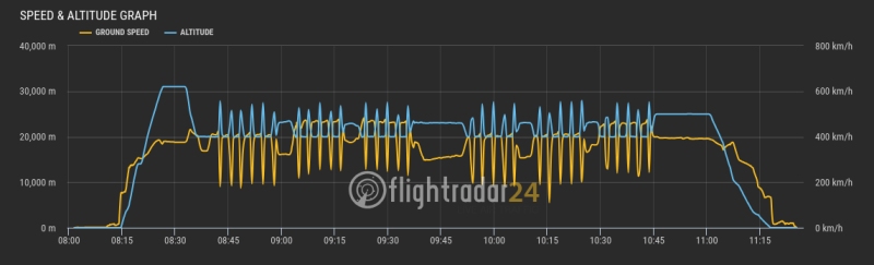 Die Flugroute des heutigen Tages.Höhen und Geschwindigkeiten während des Fluges