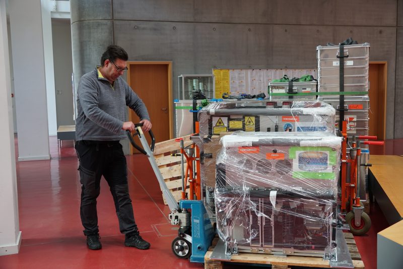 Öffnen der Transportkisten
